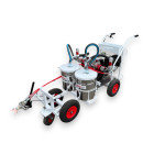 Built on a heavy-duty powder-coated steel frame, this machine is engineered for demanding commercial environments. The four-wheel design with pneumatic tires provides excellent stability and maneuverability across varied terrain, while the ergonomic handlebar system ensures comfortable operation during extended marking sessions.