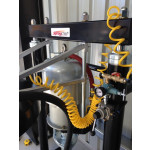 It has a air operated leaver which allows the operator to lift the machine up and down with ease and safely.